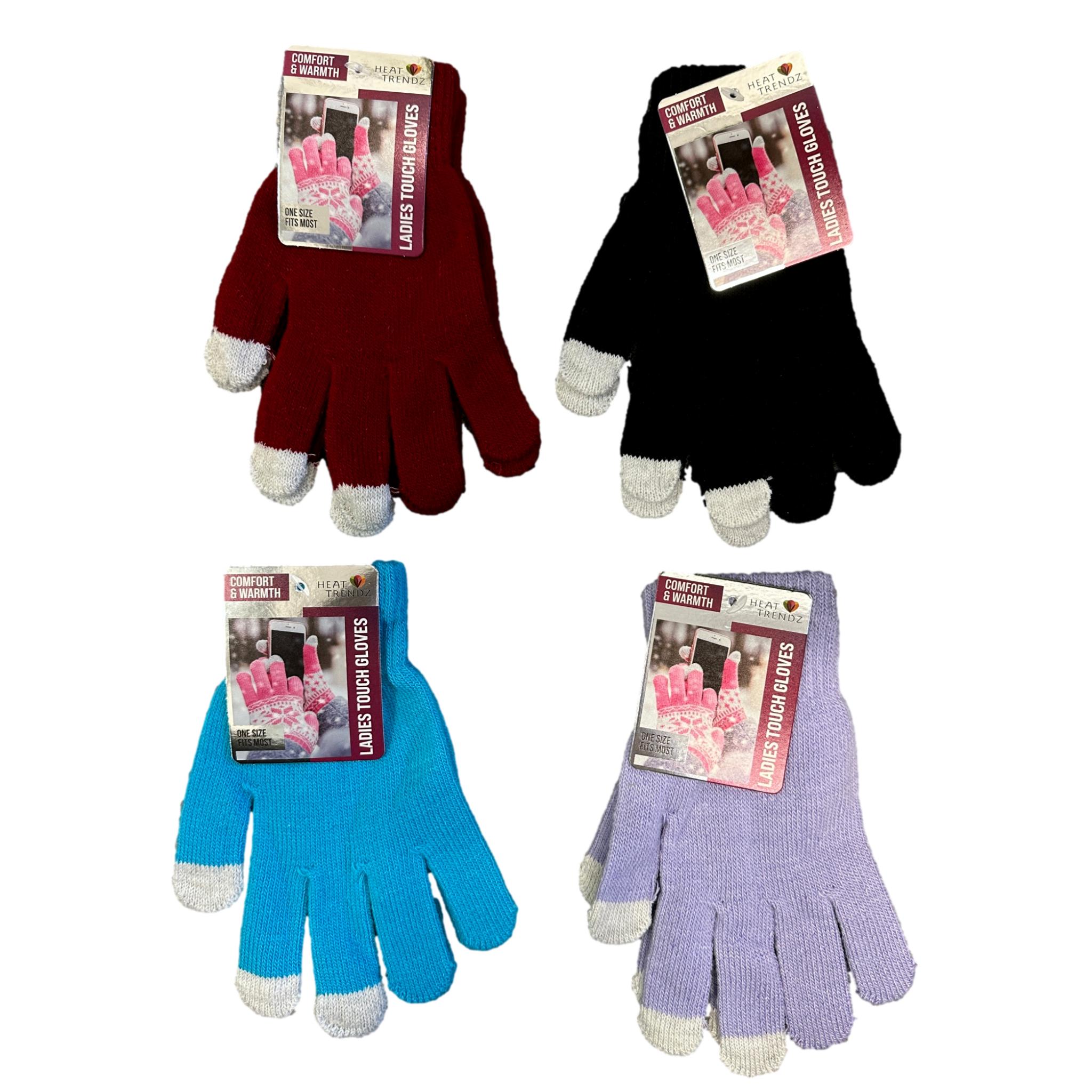 Colors and patterns may vary by case Warm, soft, knit jaquard gloves Touch screen capability on thumb and pointer finger