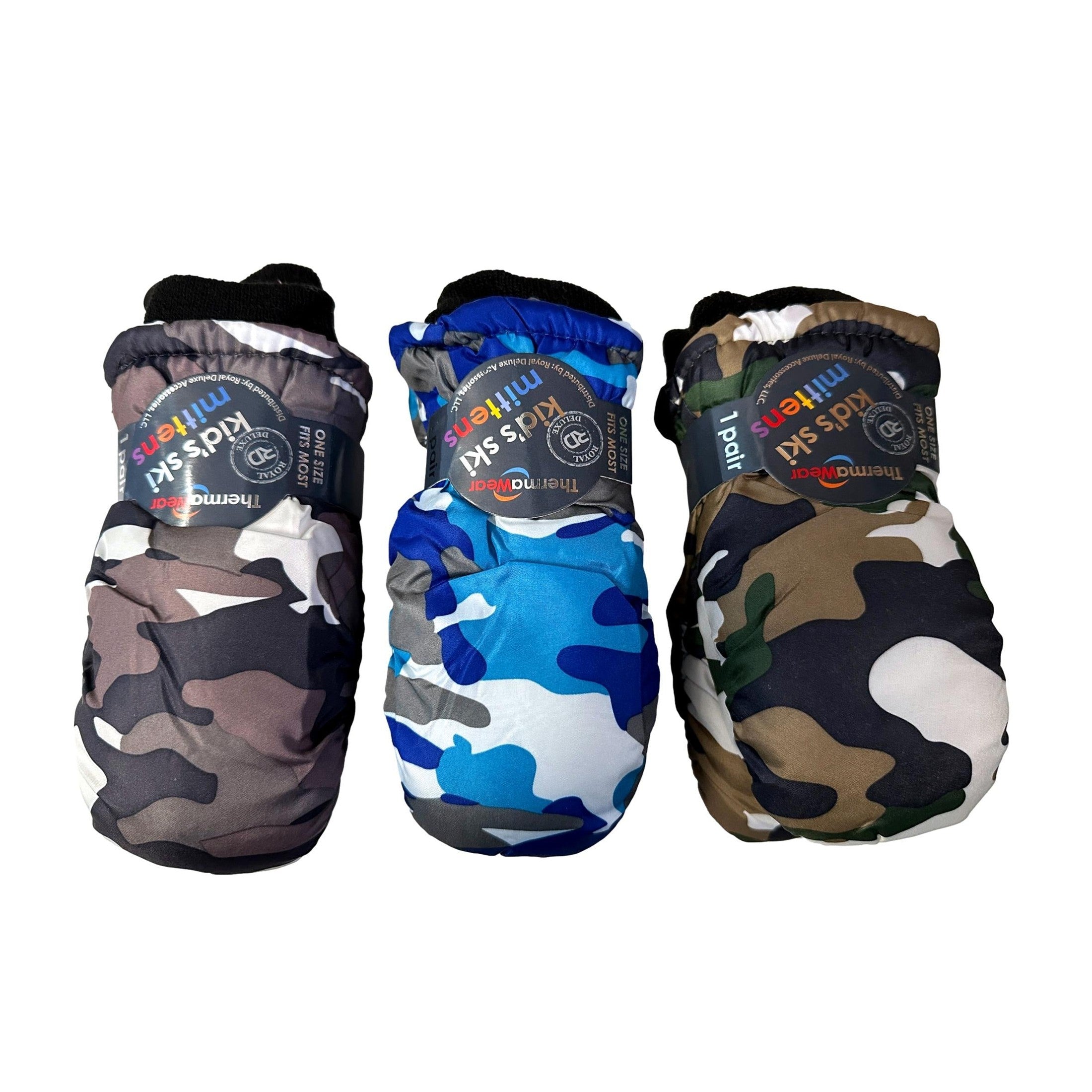 Camouflage prints blue, gray, and green 100% polyester with knit cuffs Thermawear winter apparel