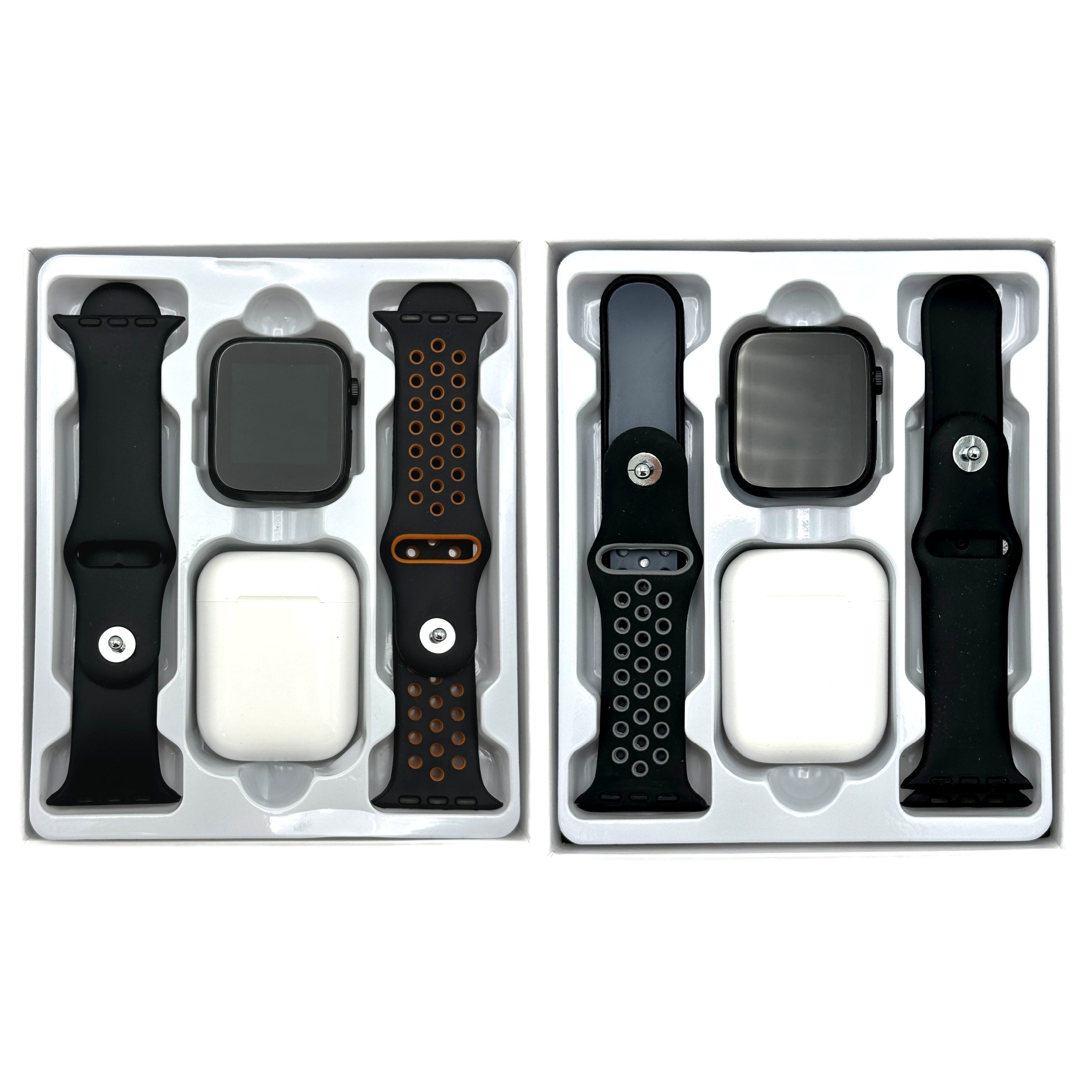 Grey/black and black or orange/black and black Smart watch includes phone app with pedometer, heart monitor, and more Two sport bands BT earbuds
