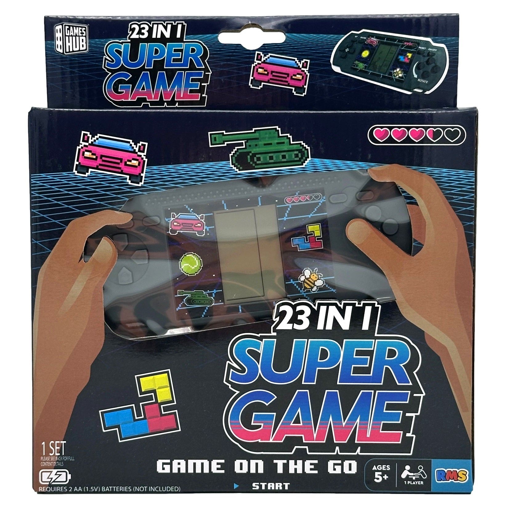 Amarillo, verde, azul, rosa, naranja y negro. 1 jugador Juegos clásicos nostálgicos Compatible solo con televisores RCA Funciona con pilas. ¡Juega dondequiera que estés!