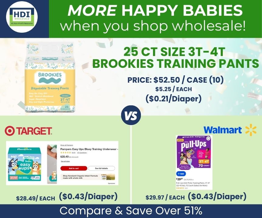 Calzoncillos de entrenamiento 3T-4T al por mayor de la más alta calidad, fabricados específicamente para organizaciones sin fines de lucro y caritativas, incluyendo bancos de pañales. A las familias les encantará el paquete de 25 calzoncillos de entrenamiento suaves y absorbentes para proteger la piel de su bebé.