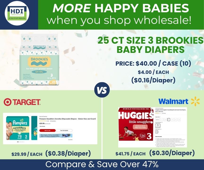 Pañales talla 3 al por mayor de la más alta calidad, fabricados específicamente para organizaciones benéficas y sin fines de lucro, incluyendo bancos de pañales. A las familias les encantará el paquete de 25 pañales suaves y absorbentes para proteger la piel de su bebé.
