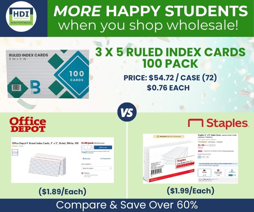 TARJETAS DE ÍNDICE CON RAYOS DE 3 X 5, PAQUETE DE 100