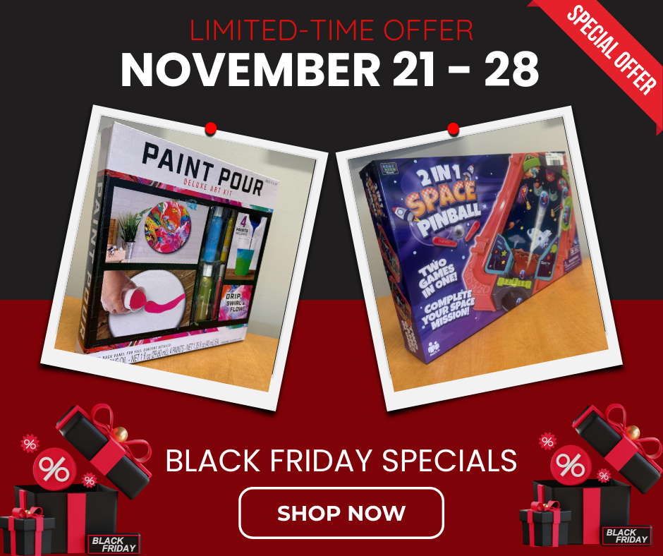 When you spend $3,000 or more, you’ll receive 12 Space Pinball Games + 12 Paint Pour Art Kits — a bonus value of $209.40.