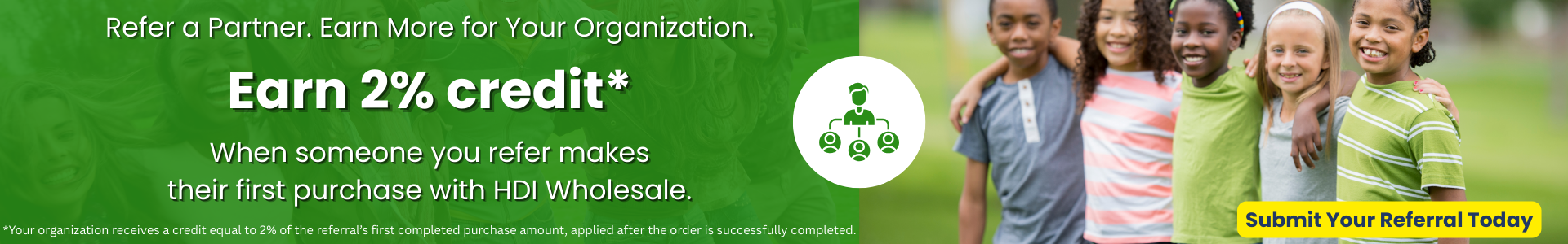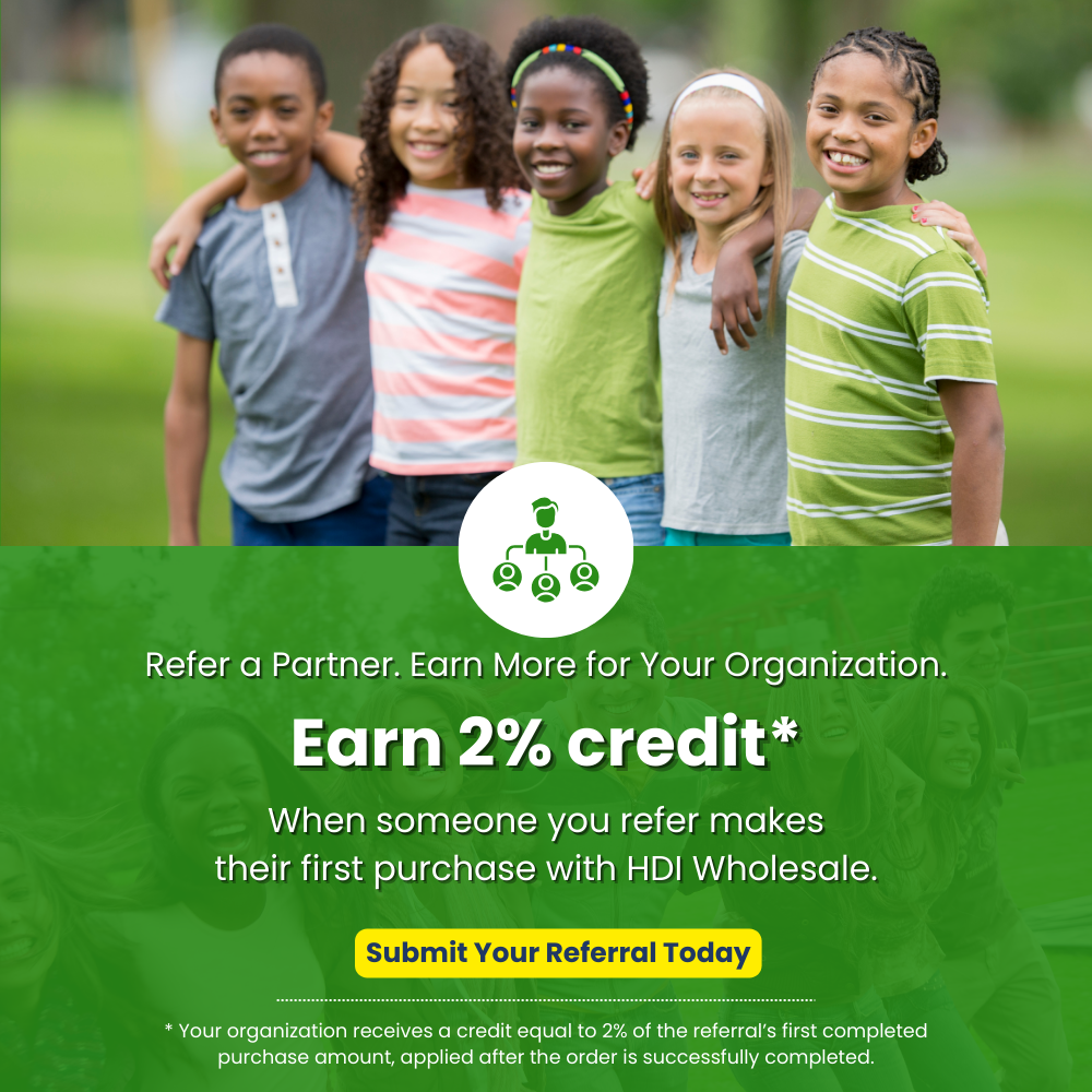 Please note: referral bonus offered on first ever purchase from HDI Wholesale by your referred organization.