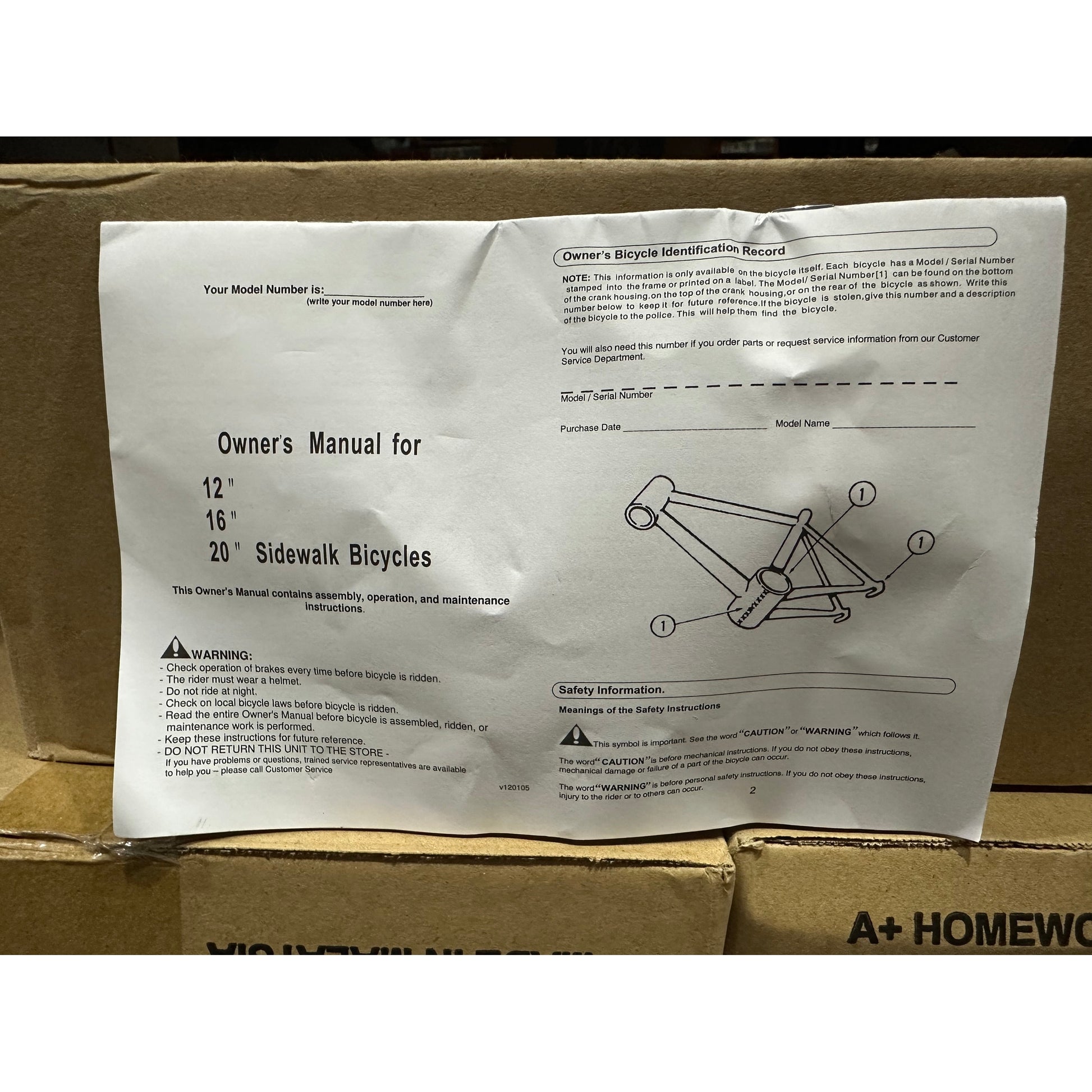 16 IN PURPLE BICYCLE WITH TRAINING WHEELS